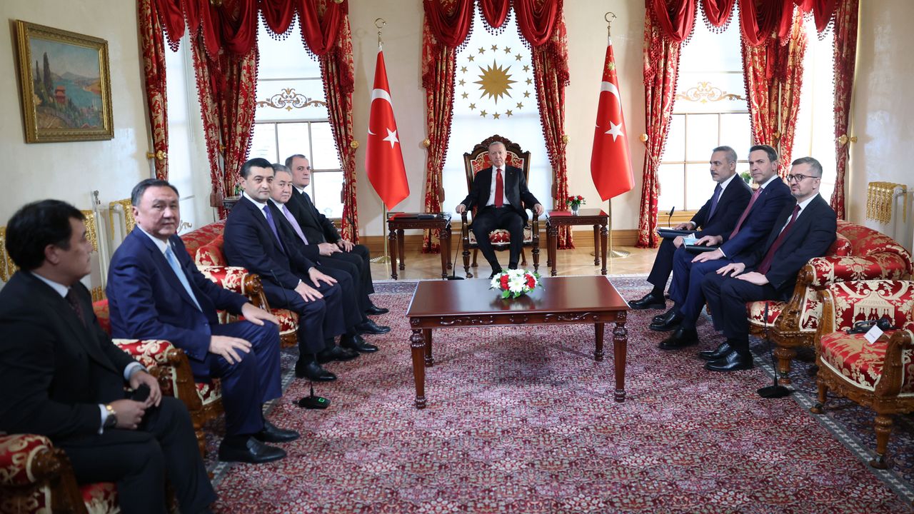 Cumhurbaşkanı Recep Tayyip Erdoğan, Dolmabahçe Çalışma Ofisi'nde, TDT Genel Sekreteri Ömüraliyev, Azerbaycan Dışişleri Bakanı Ceyhun Bayramov, Özbekistan Dışişleri Bakanı Bahtiyor Saidov, Kırgızistan Dışişleri Bakanı Ceenbek Kulubayev ile Kazakistan Dışişleri Bakan Yardımcısı Alibek Bakayev'i kabul etti.