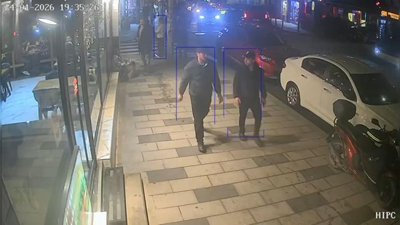 Görüntülerde, şüphelilerin valizi sokaklarda dolaştırdığı daha sonra çöp konteynırına bıraktığı ve aralarında sohbet ederek yürüdükleri görülüyor. (DHA)