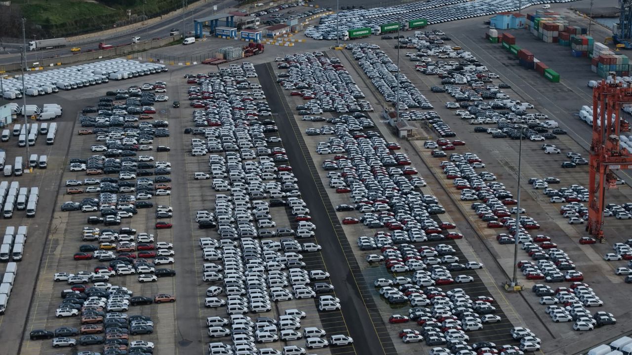 İstanbul'un önemli lojistik merkezlerinden Haydarpaşa Limanı yurtdışından gelen sıfır otomobillerle doldu. Gümrük işlemleri gerçekleşene kadar liman sahasında bekletilen araçların, süreçlerin ardından ülke genelindeki bayi ve galerilere gönderilerek satışa sunulacakları belirtildi. Limandaki araç yoğunluğu havadan dronla görüntülendi. (DHA)