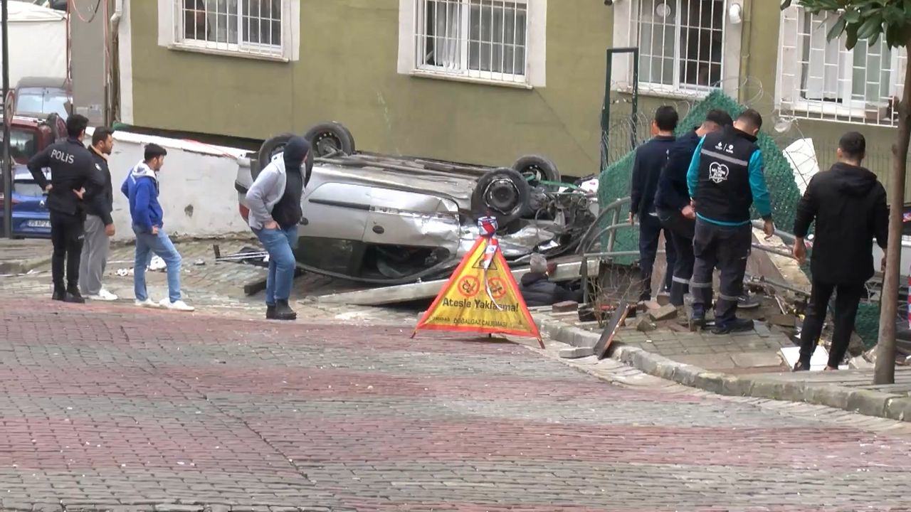 Kaza anı ise bir binanın güvenlik kamerası tarafından kaydedildi. Görüntülerde, yokuştan hızla inen otomobil önce park halindeki araçlara daha sonra da doğalgaz kutusu ve bahçe duvarına çarpıyor. Otomobil takla atarak yokuştan yuvarlanıyor.