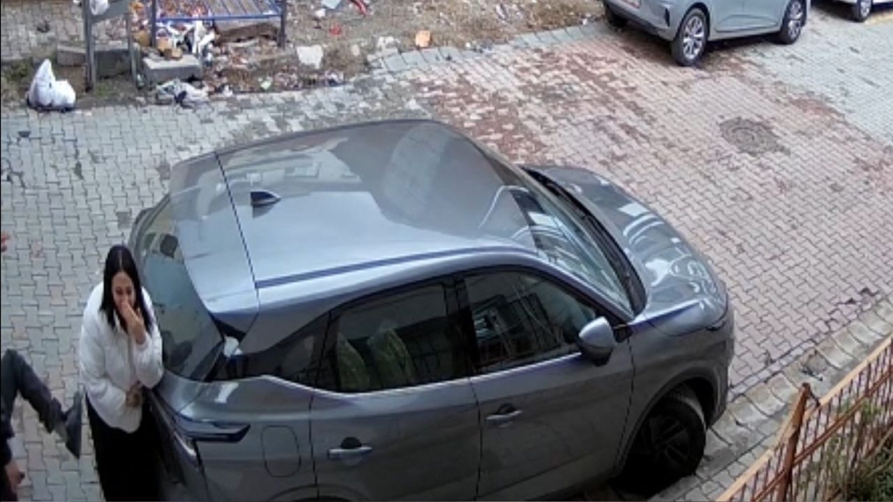Bilal E. ardından kadını arabanın arkasına sıkıştırarak darbetmeye başladı. Vatandaşların gözü önünde tekme ve yumruklarla saldıran Bilal E., kadına küfür de etti. Kadının bağırarak ağladığı olay sırasında bazı vatandaşların müdahalesi üzerine Bilal E., silahını çekti. Kadının başına silah dayayan Bilal E. ardından çevredeki vatandaşları tehdit etti. Daha sonra aşağı doğru koşarak sokaktan uzaklaşan Bilal E., bir süre sonra gözden kayboldu. Kadının 'Polis çağırın, yardım edin' diyerek ağladığı anlar ise güvenlik kamerasına saniye saniye yansıdı.