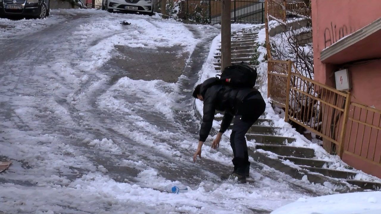 Kağıthane'de dün etkili olan kar yağışının ardından gece buzlanma ve don meydana geldi. Ana arterlerde sorun yaşanmazken ara sokak ve dik yokuşlarda vatandaşlar zor anlar yaşadı. Merdiven korkuluklarını tutarak ilerlemeye çalışanlar güçlükle yürümeye devam etti.