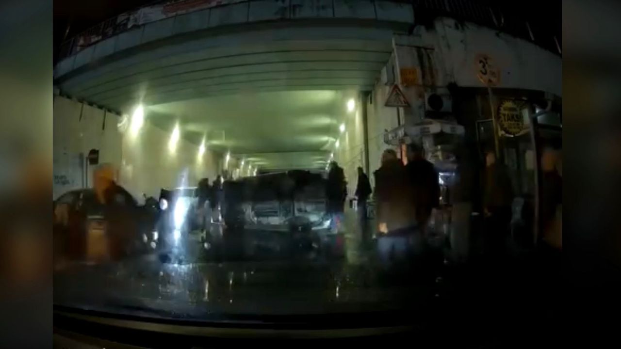 Kaza anı ise başka bir otomobilin araç içi kamerasına yansıdı. Polis ekipleri kazayla ilgili inceleme başlattı.(DHA)
