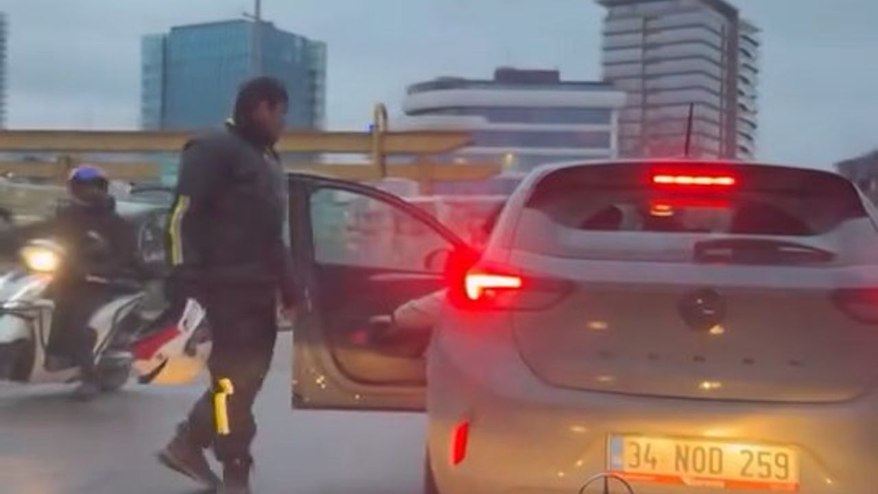 Olay, dün akşam saatlerinde Pendik'te meydana geldi. İddiaya göre, seyir halindeki otomobil sürücüsü ile motosiklet sürücüsü arasında yol verme nedeniyle tartışma çıktı. Aracından inen motosiklet sürücüsü, kapısını zorla açtığı otomobilin sürücüsünü kolundan tutarak aşağı indirmeye çalıştı. Motosikletlinin tehdit ve hakaret ettiği tartışma çevredeki sürücülerin araya girmesiyle son bulurken yaşananlar cep telefonu kamerasıyla kaydedildi. (DHA)