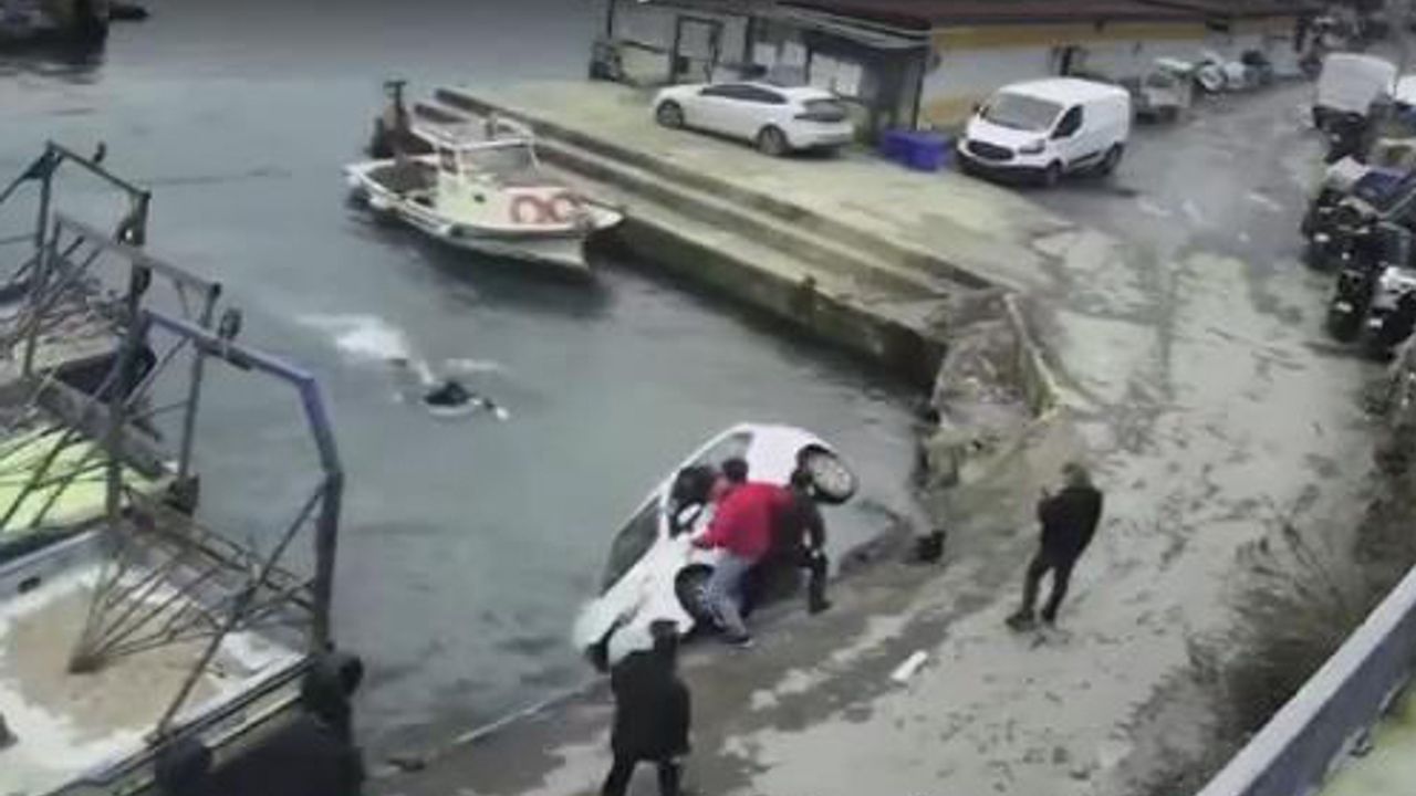 Kaza, bugün saat 13.00 sıralarında Rumeli Kavağı'nda meydana geldi. Seyir halindeki otomobil, sürücüsünün direksiyon hakimiyetini kaybetmesi sonucu balıkçı barınağındaki mendirekten denize düştü. Balıkçı teknesinde bekleyen 3 kişi otomobili denize düştüğünü görünce yardıma koştu. Denizde hareket halindeki bir teknede olan kişi de denize atlayarak yüzerek otomobilin yanına geldi. Kazayı yara almadan atlatan sürücü, çevredekilerin yardımıyla araçtan çıkarıldı.