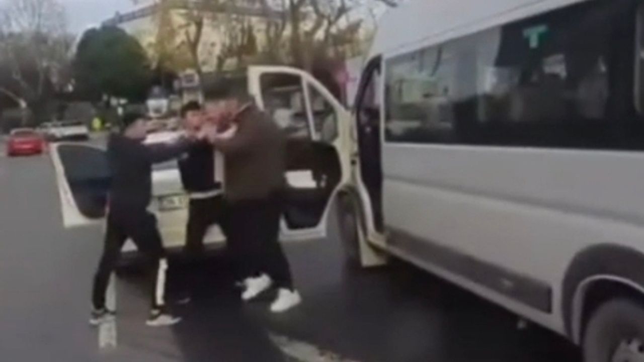 Olay, dün saat 15.00 sıralarında Pınar Mahallesi Büyükdere Caddesi'nde meydana geldi. İddiaya göre, trafikte aynı yönde seyir halinde olan servis şoförü ile otomobil sürücüsü arasında yol verme nedeniyle çıkan tartışma kısa sürede büyüyerek kavgaya dönüştü. Araçlarından inen sürücüler birbirlerine tekme tokat saldırdı. Olay çevredeki kişilerin araya girmesiyle son buldu. Yaşanan kavga ise seyir halindeki motosikletlinin kask kamerasıyla görüntülendi. (DHA)