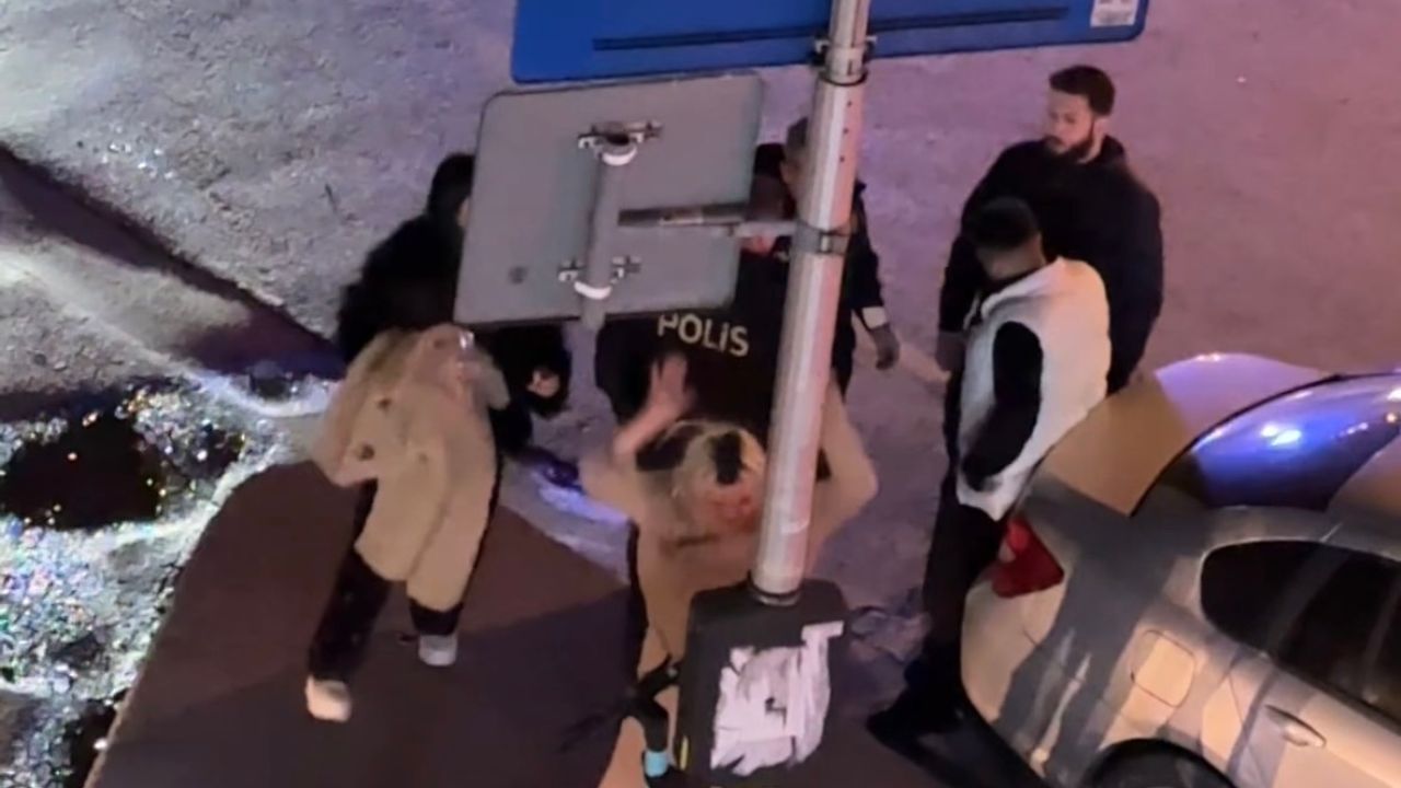 Olay yerine gelen polis ekipleri tarafları ayırdı. Küfür etmeye devam eden kadın, tekme atınca polis ekipleri tekrar müdahalede bulundu. Kadın, 'Uyuşturucu kullanıyor' dediği kişiden şikayetçi olmak istediğini söyledi. Kavga sırasında sinirlenerek elektrik direğini yumruklayan kadının arkadaşları ise 'Yapma böyle ayıp' diyerek müdahale etmeye çalıştı.