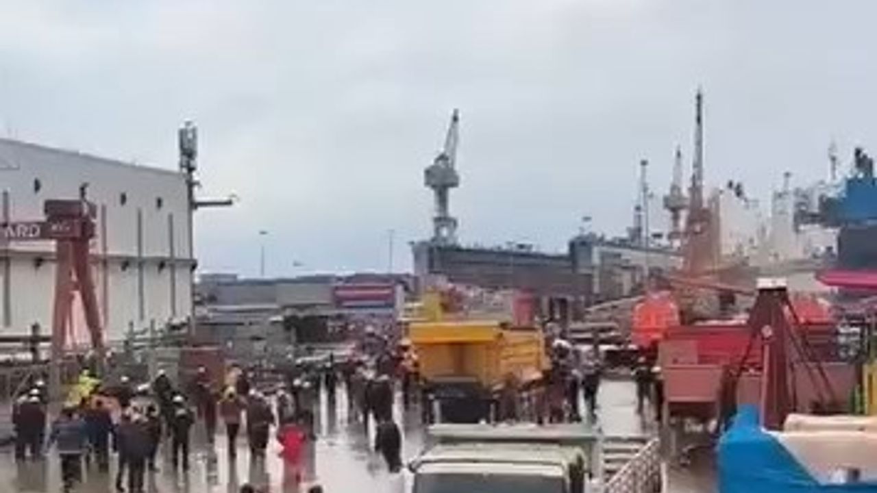 Ayşe GÜREL / İSTANBUL, (DHA)- Tuzla'da tersaneler bölgesinde vinç devrildi. İhbar üzerine olay yerine çok sayıda ekip sevk edildi. Ekiplerin çalışması sürüyor. (DHA)