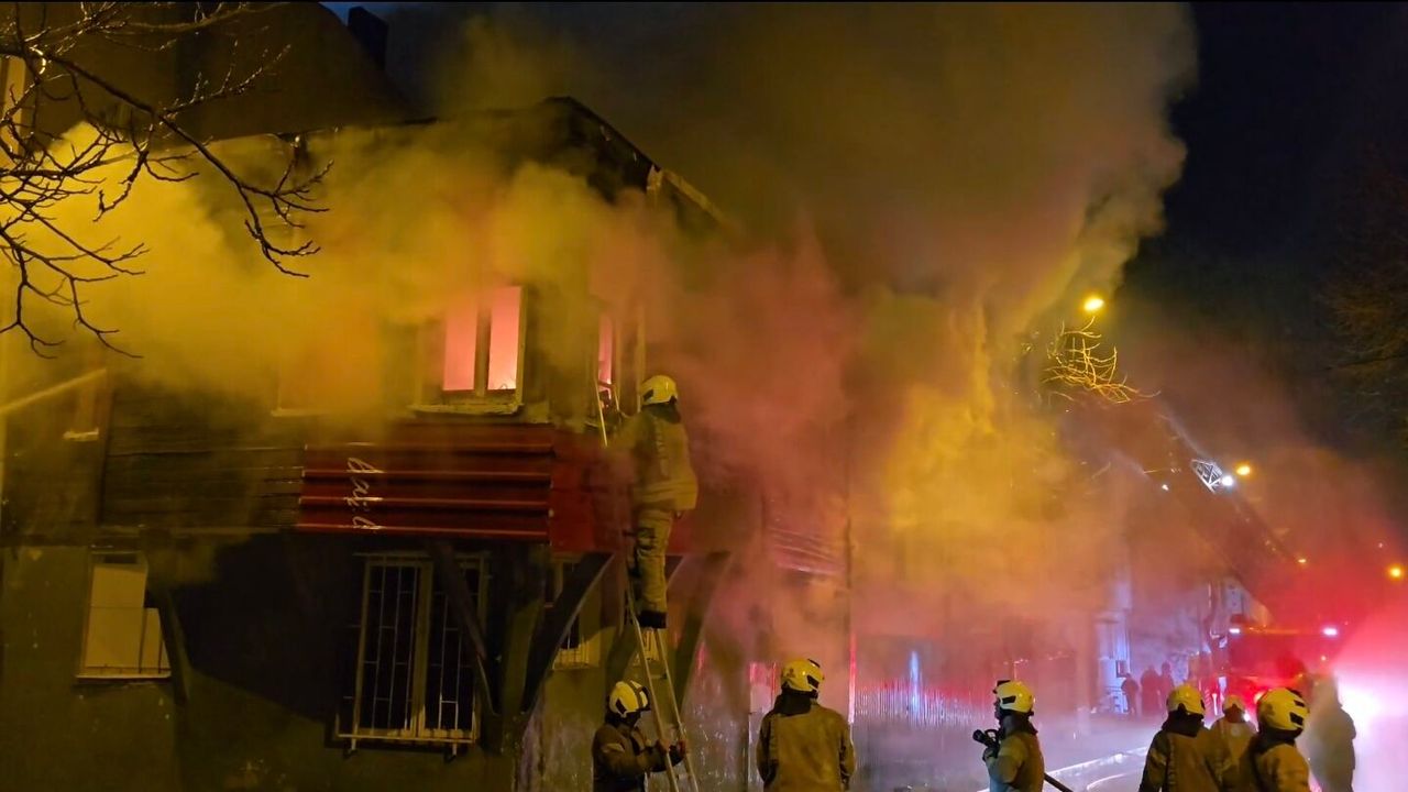Yangın, saat 22.00 sıralarında Üsküdar Aziz Mahmud Hüdayi Mahallesi Enfiyehane Sokak'ta bulunan 2 katlı ahşap metruk binada çıktı. Henüz bilinmeyen nedenle başlayan yangında alevler kısa sürede büyüyerek, yan tarafta bulunan kullanılmayan başka bir binaya da sıçradı. Alevleri gören mahallelinin ihbarı üzerine olay yerine itfaiye ve polis ekipleri sevk edildi. Polis ekipleri çevrede güvenlik önlemi alırken, itfaiye ekiplerinin müdahalesiyle yangın söndürüldü. Yangında ölen ya da yaralanan olmazken, hasar oluşan binalar dron ile havadan görüntülendi. (DHA)