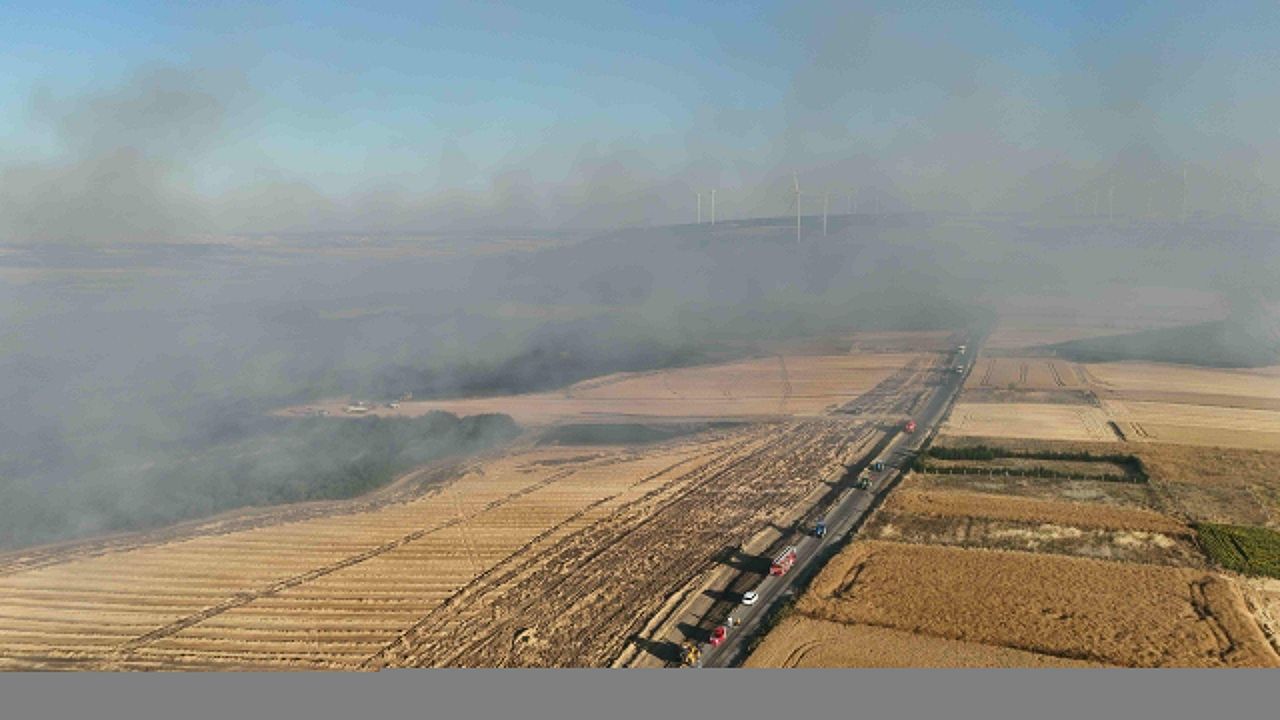 Silivri'de Çanta Balaban Mahallesi'ndeki kuru otluk alanda çıkan ve rüzgarın etkisiyle büyüyerek ormanlık alana yayılan yangına ekiplerin havadan ve karadan müdahalesi devam ediyor.