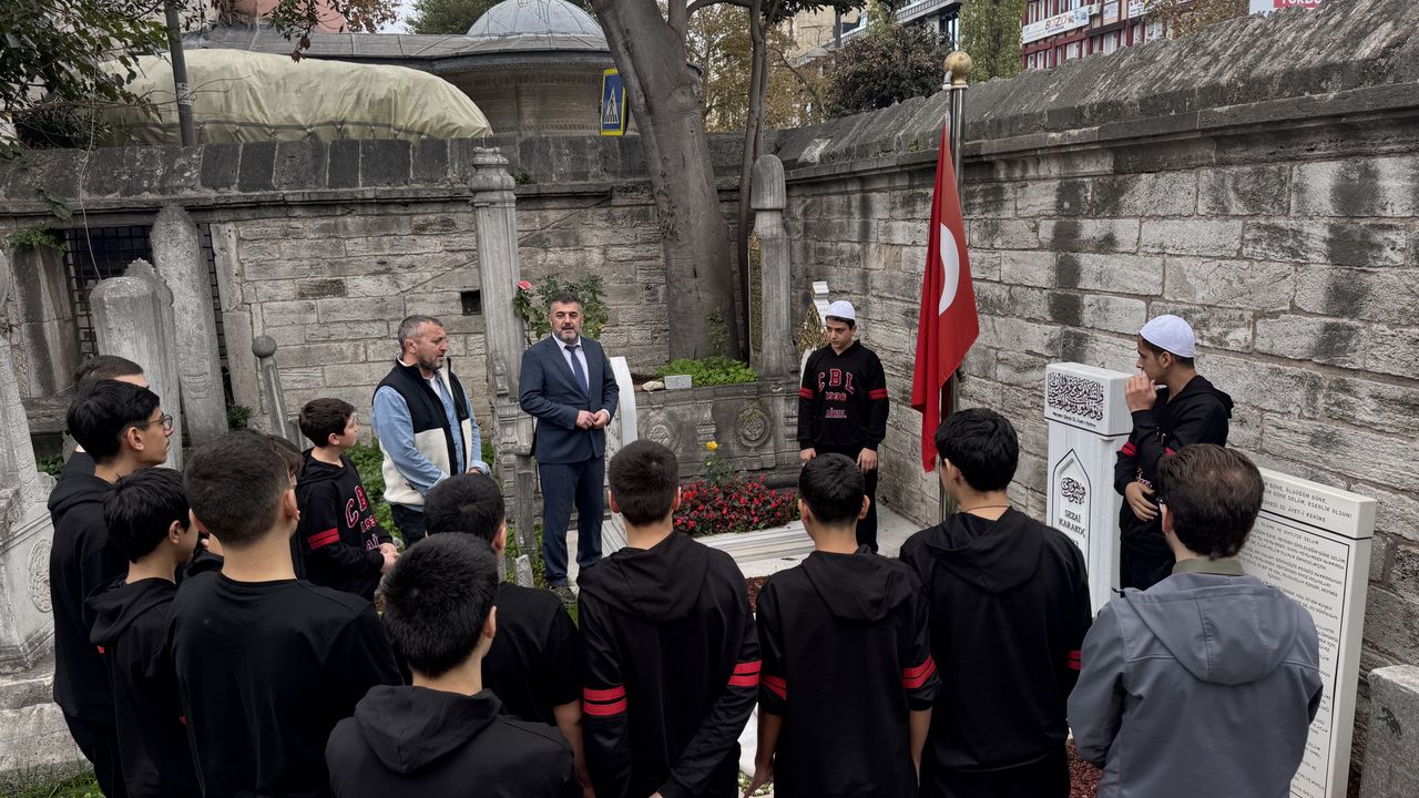 Sultangazi Nuri Pakdil Anadolu Lisesi öğrencileri, İstiklal Marşı'nın şairi Mehmet Akif Ersoy'un Edirnekapı Mezarlığı'ndaki kabrini ziyaret ederek, dua etti.