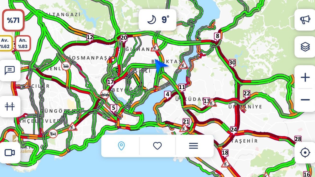 Hasan YILDIRIM / İSTANBUL, (DHA) - İstanbul'da haftanın ilk iş gününde trafik yoğunluğu yaşandı. İBB Trafik Yoğunluk Haritası verilerine göre saat 09.00 itibarıyla yoğunluk yüzde 71'e ulaştı.