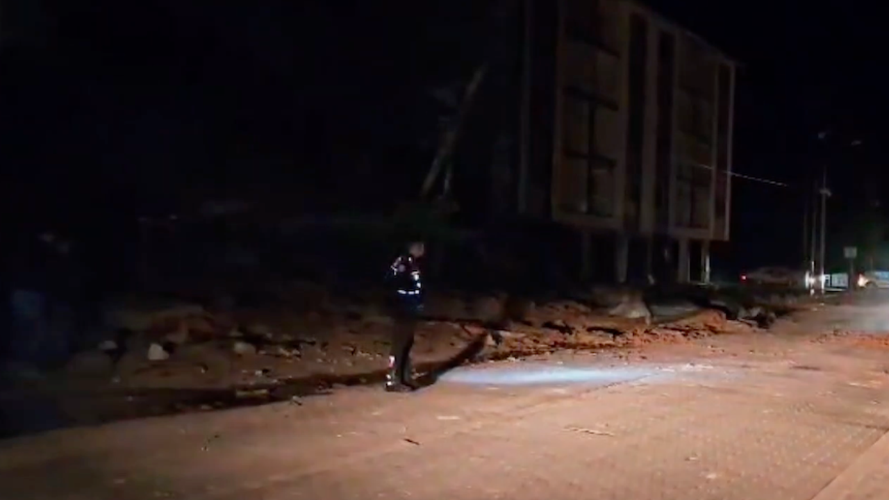 Sındırgı'da yıkılan binanın olduğu cadde - Toplanan vatandaşlar - İtfaiye ve polis ekiplerinin önlem alması - Tamamen yıkılan bina Balıkesir'de 6,1 büyüklüğünde deprem