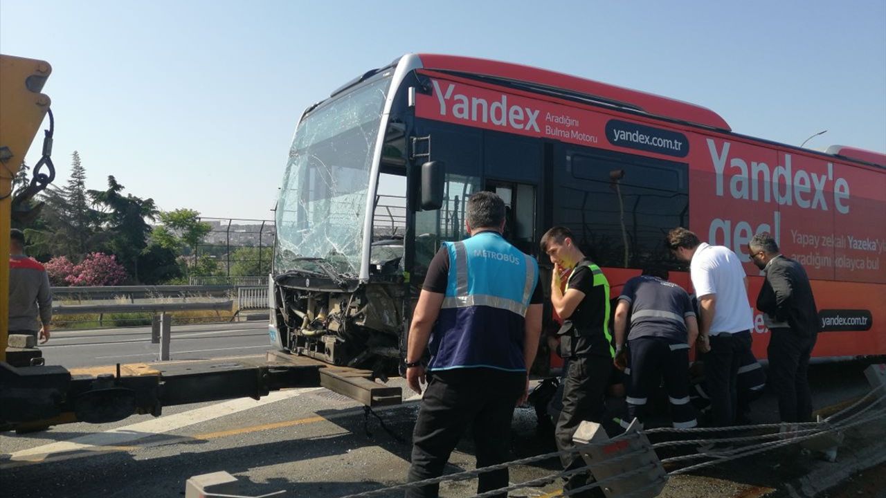 İSTANBUL (AA) - İstanbul'da seyir halindeyken kontrolden çıkan metrobüs bariyerlere çarptı.