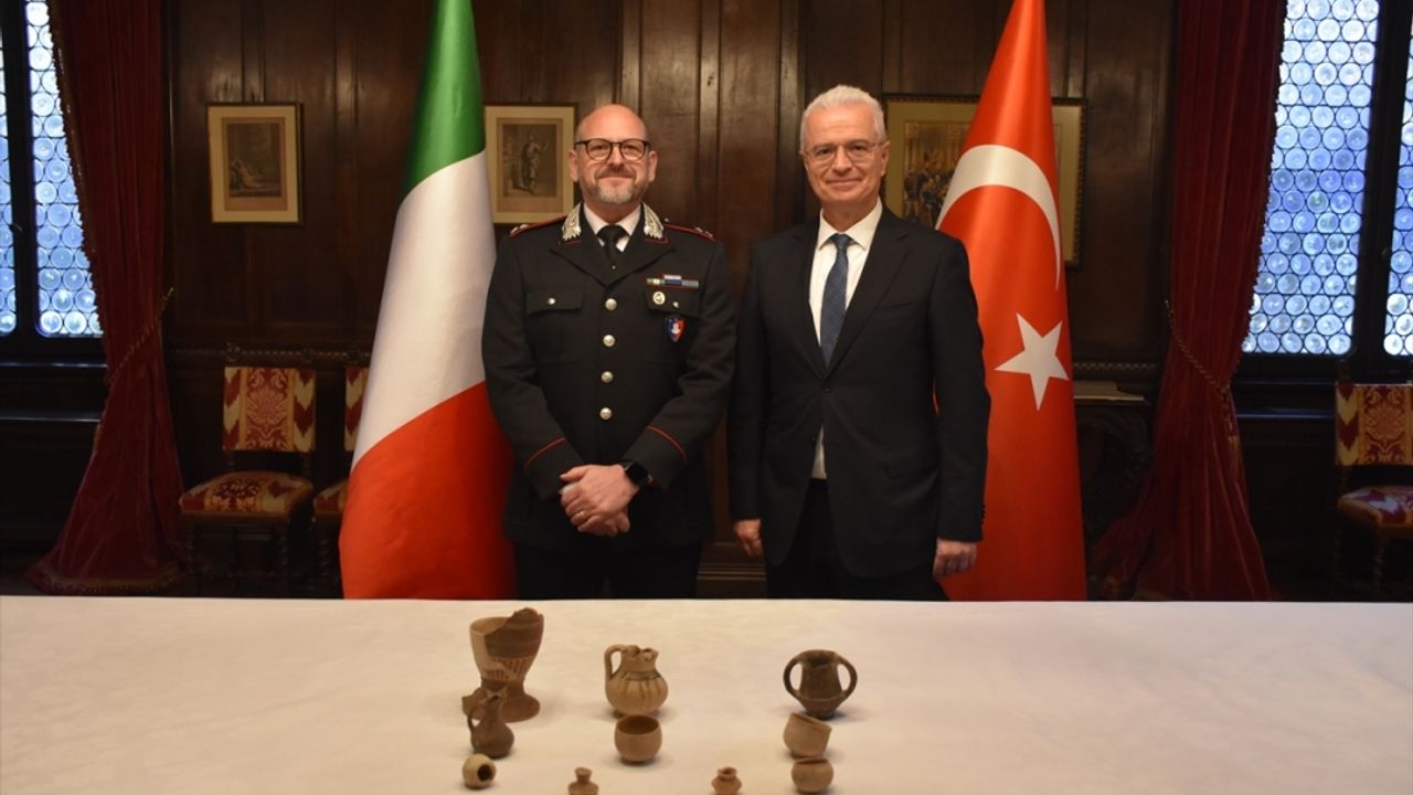 Törende Floransa Jandarma Komutanlığı (Carabinieri) Kültür Varlıklarını Koruma ve Tarihi Eser Kaçakçılığıyla Mücadele Şube Müdürü Binbaşı Claudio Mauti ve heyeti, milattan önce (MÖ) 3000'lerden Demir Çağı'na kadar olan dönemde Anadolu'da yapılan ve bir şekilde İtalya'da bulunan 10 pişmiş toprak eseri, Türkiye'nin Roma Büyükelçisi Ömer Gücük'e teslim etti.