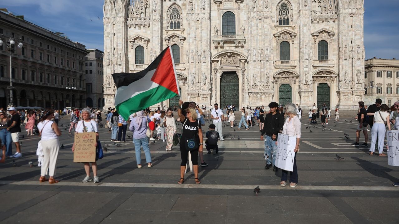 Diğer yandan, ülkenin ikinci büyük kenti olan kuzeydeki Milano’da da şehir merkezindeki Duomo Katedrali önünde, İsrail saldırısı altındaki Gazze’de yaşananlara dikkati çekmek için eylem yapıldı.