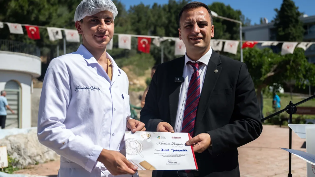 İzmir'de Bornova Belediyesi, İzmir Şekerciler ve Pastacılar Odası ile İzmir Soroptimist Kulübü iş birliğiyle düzenlenen İstihdam Garantili Pastacılık ve Ekmekçilik Kursu’nu başarıyla tamamlayan kursiyerler, sertifikalarını Evka-3 Mutfak Atölyesi’nde düzenlenen törenle aldı.İZMİR (İGFA) - “Hamurdan Umuda” sloganıyla 18-35 yaş arası gençleri meslek sahibi yapmayı amaçlayan kursa 34’ü kadın, 4’ü erkek olmak üzere toplam 38 kursiyer katıldı. Hafta içi sabah ve öğleden sonra olmak üzere iki grup halinde yürütülen yaklaşık 300 saatlik eğitim sürecinin sonunda, katılımcılar kalfalık belgesi almaya hak kazandı.