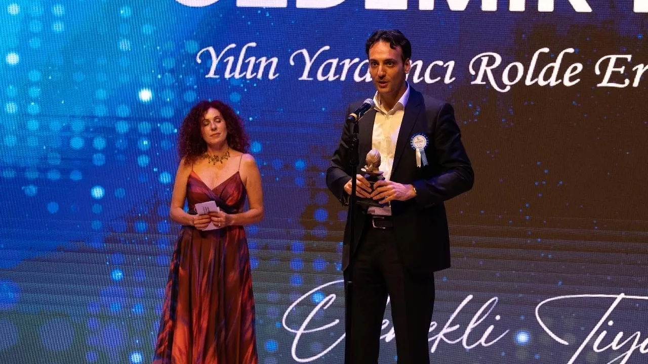Ege Bölgesi’nde, yıl boyunca çalışmalarıyla öne çıkan tiyatrocuların ödüllendirildiği gecede, İzBBŞT Sanatçısı Bahadır Buyruk, Şehir Tiyatroları’nın bu yıl repertuvarına kattığı, tiyatroseverlerin yoğun ilgi gösterdiği ‘Çok Tuhaf Soruşturma’ oyunundaki ‘Aydın’ karakteriyle ödüle layık görüldü.