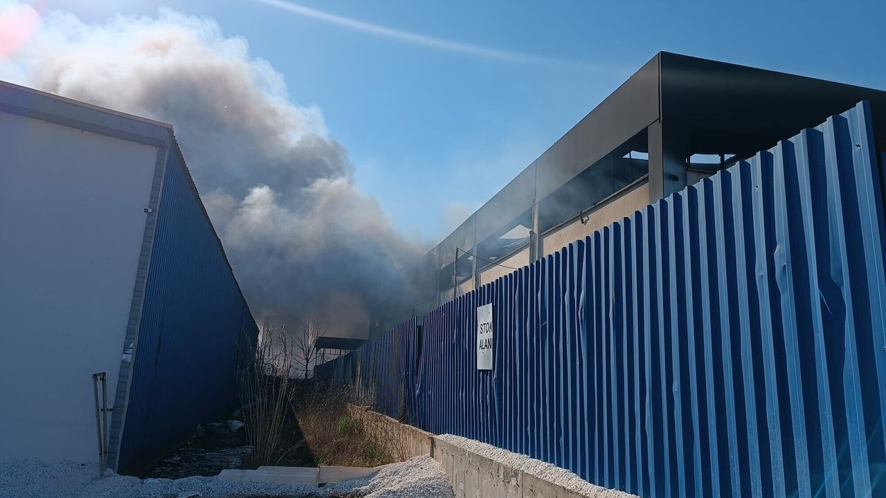 Kadir ÖZEN/İZMİR, (DHA)-İZMİR'in Torbalı ilçesinde bir geri dönüşüm fabrikasında yangın çıktı. İtfaiye ekiplerinin alevlere müdahalesi sürüyor.