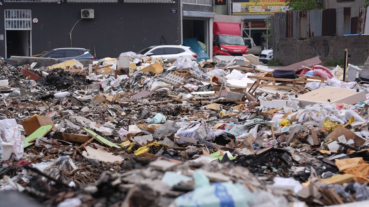 İZMİR (AA) - İzmir'in Buca ilçesinde, mobilyacı esnafın yoğunlaştığı mahallede oluşan atık yığını, esnafın tepkisine neden oluyor.