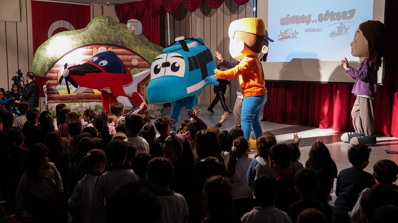İZMİR (AA) - İzmir'de, Türk Havacılık ve Uzay Sanayii (TUSAŞ) tarafından çocukların havacılık ve uzay hakkındaki farkındalıklarını artırmak, onlara yerli ve milli hava araçlarını tanıtmak amacıyla hazırlanan müzikal, öğrencilerle buluştu.