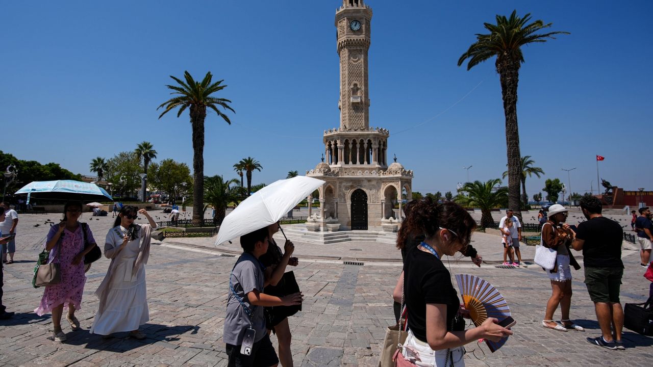 Konak'ta güneşten korunmak isteyenler, şemsiye, yelpaze ve el vantilatörü kullanarak serinlemeye çalıştı. Dışarı çıkanlar, bunaltıcı sıcaktan dolayı parklardaki gölgelik alanlarda vakit geçirmeyi tercih etti.