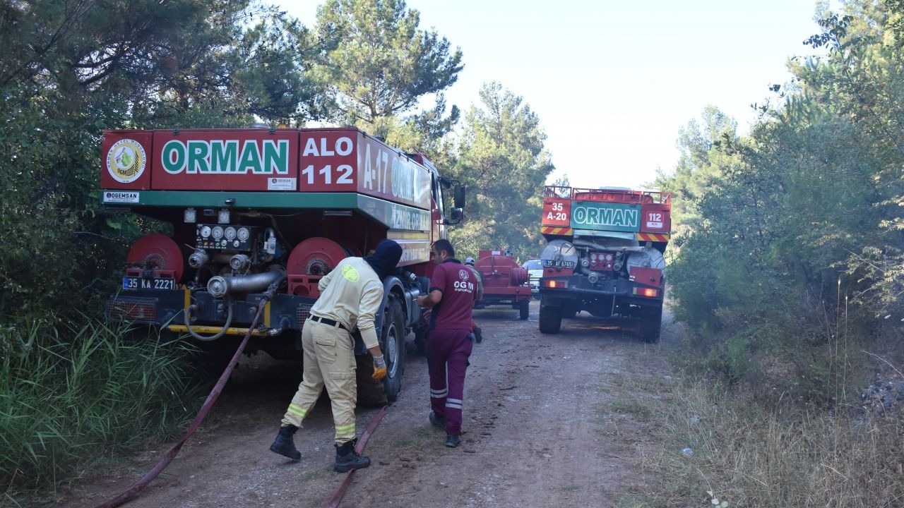 İhbar üzerine, bölgeye İzmir Orman Bölge Müdürlüğüne ait 2 uçak, 2 helikopter, 6 arazöz ve 2 su tankeri sevk edildi.