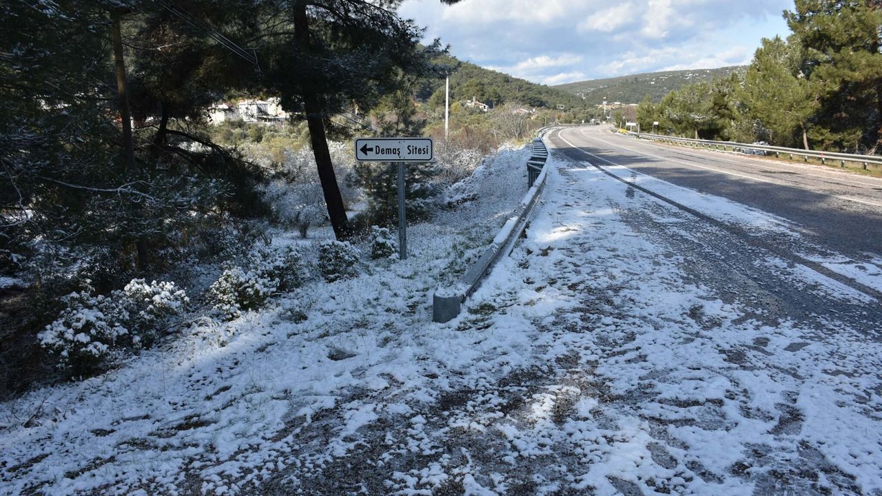 İzmir'de gece saatlerinde başlayan kar yağışı Urla'nın Nohutalan ve Uzunkuyu mahalleleri ile Karaburun'un Bozdoğan ilçesinin yüksek kesimlerinde etkili oldu. Sabah saatlerinde de etkisini sürdüren kar yağışının ardından kırsal yerleşim yerlerindeki bağ ve bahçeler ile yollar, beyaz örtüyle kaplandı. Bölgede oluşan seyirlik manzara, dron ile görüntülendi. (DHA)