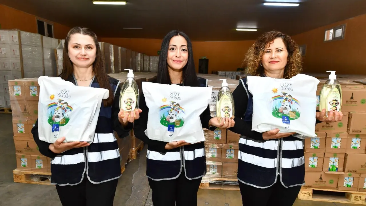 Dağıtımlar kapsamında sütlerin yanında bebek şampuanı da evlere teslim edildi.
