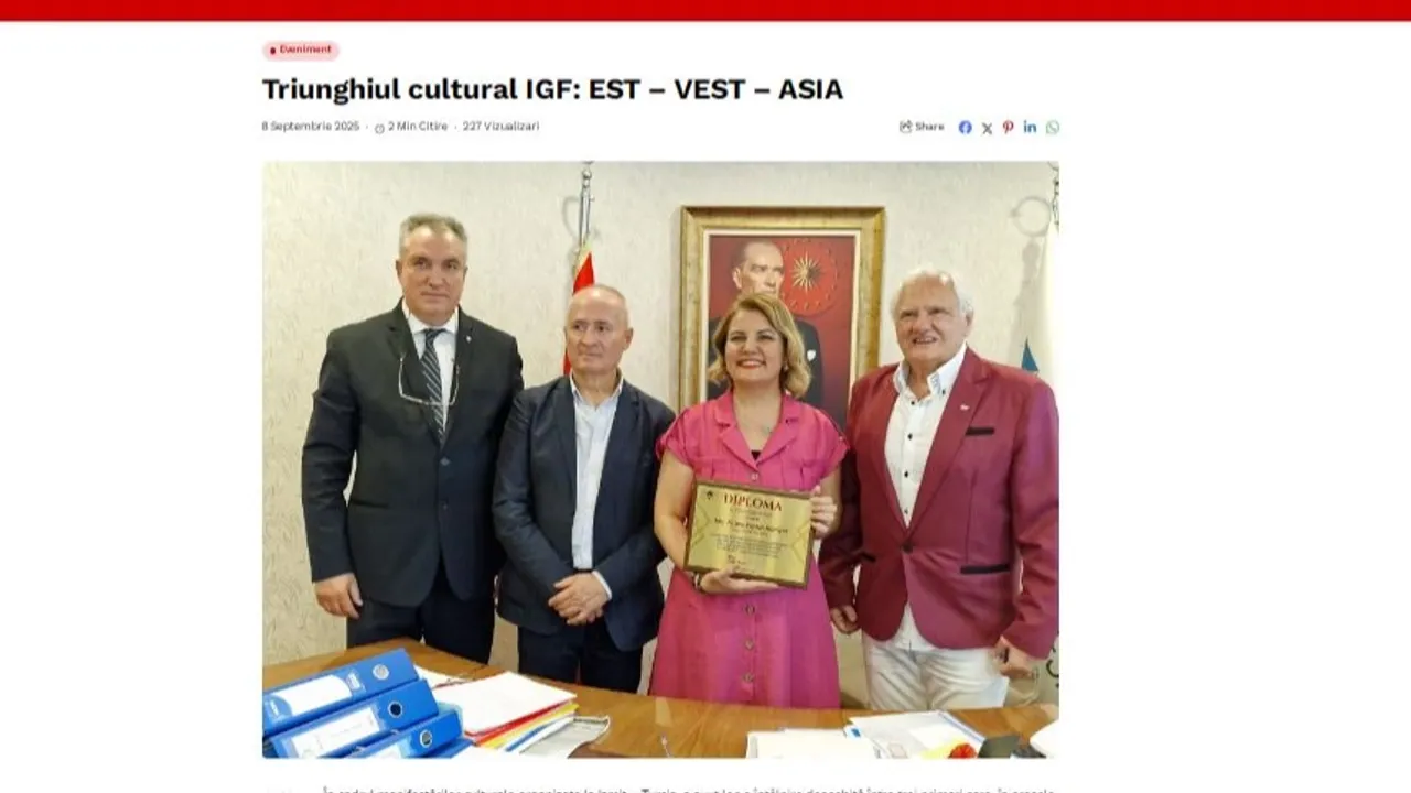 İzmit Belediyesi tarafından düzenlenen 13. Uluslararası Pişmaniye, Müzik ve Dans Festivali’nde imzalanan “IGF Kültür Üçgeni: Doğu-Batı-Asya” iş birliği protokolü, Romanya basınında da yer bulduKOCAELİ (İGFA) - Romanya’da yayımlanan haberde, İzmit Belediye Başkanı Fatma Kaplan Hürriyet, İtalya’nın San Giovanni Rotondo Belediye Başkanı Filippo Barbano, Moldova’nın Ungheni Belediye Başkanı Vitalie Vrabie ve IGF Başkanı Dorel Cosma’nın bir araya gelerek uluslararası kültürel kalkınmaya yönelik önemli bir adım attığına dikkat çekildi.