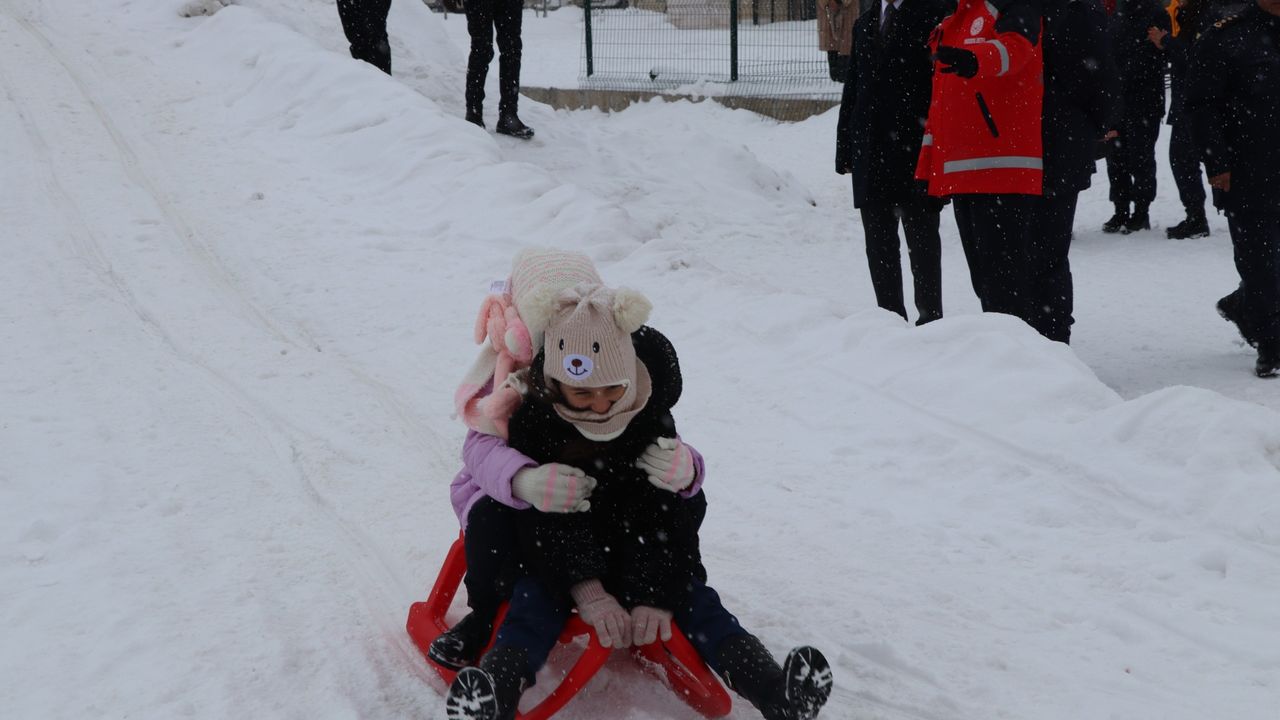 Uğur YİĞİT/SİVAS, (DHA)- SİVAS'ta jandarma ekipleri tarafından hazırlanan pistte, Sevgi Evleri'nde kalan çocuklar için kızak etkinliği düzenlendi.