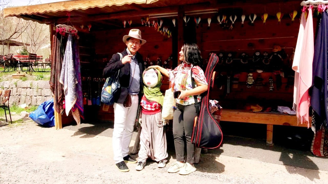 Müzik öğretmeni Hülya Şen ise 'Sevgili dostum Takeshi İmamura ile geçen yıl Türkiye'ye geldiğinde Türk halk müziği icra etmiştik. O zaman ona Kapadokya'dan bahsettim. Kapadokya bölgesini çok merak ettiğini söylemişti ve şimdi sözünü tuttu, şu anda bizlerle birlikte. Dün Kapadokya'da Erdemli Vadisi'ni gezdirdik, Sayın Kaymakamım, Belediye Başkanım da bizlere eşlik ettiler. Takeshi Soğanlı'yı çok merak ediyordu. Soğanlı Çiçek Kadınları Kooperatifi ile birlikte bebek yaptılar. Zaten 12 bin 500 kilometreden yol gelme amacı buydu. Çok da keyif aldı, çok da başarılı bir bebek yaptı. Teknik olarak ilk başta zorlasa da buna çabuk adapte oldu, çok güzel bir bebek yaptı. İsmini de sevgili manevi kızı Filiz'in ismini verdi. Bugün çok eğlendik, birlikte turistlerimize müzik yaptık, bağlama çaldık. Çiçek kadınlarımız da çok eğlendiler, mutlu oldular, onore oldular' diye konuştu.