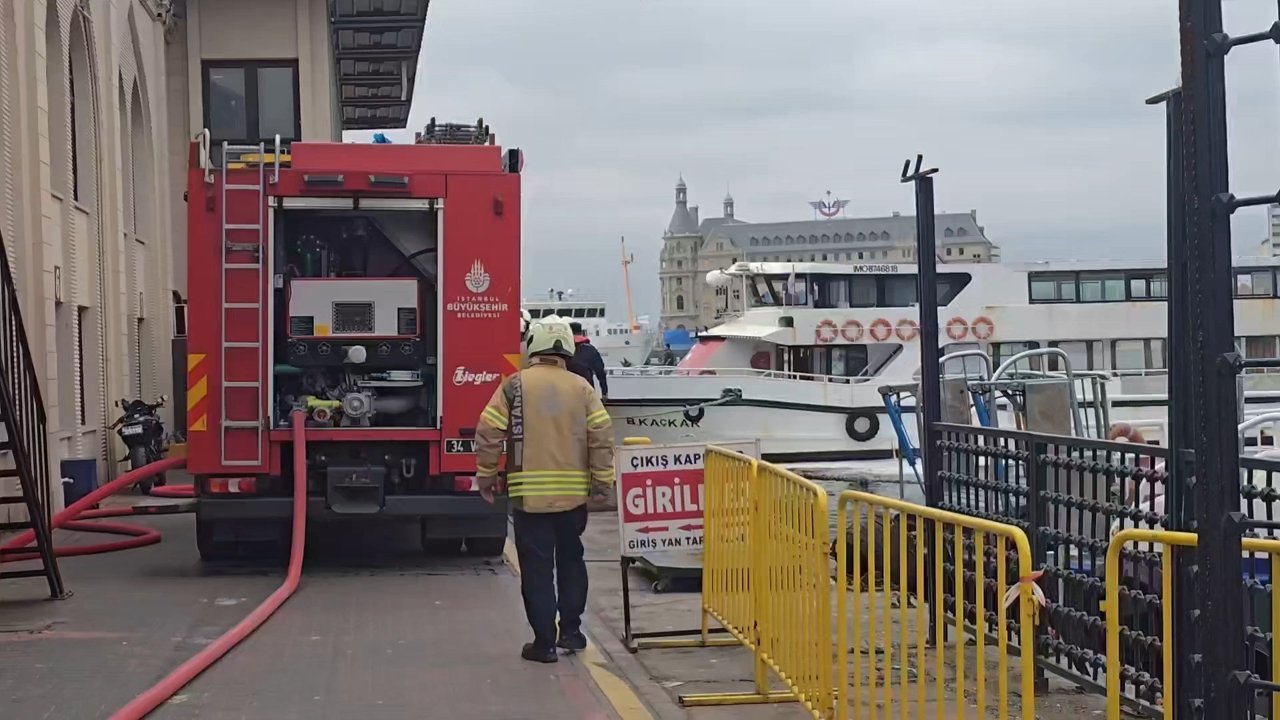 Yangın, saat 14.45 sıralarında Kadıköy-Karaköy hattında sefer yapan 42 metre uzunluğundaki 'B.KAÇKAR' isimli yolcu teknesinde çıktı. İskelede bağlı olduğu sırada teknenin makine dairesinde çıktığı öğrenilen yangını görenler durumu itfaiye ekiplerine bildirdi. İhbar üzerine olay yerine Kıyı Emniyeti, Sahil Güvenlik, İtfaiye ve UMKE ekipleri sevk edildi. İçerisinde yolcu bulunmadığı öğrenilen teknede çıkan yangın kısa sürede söndürüldü. Can kaybı ya da yaralanmanın yaşanmayan yangının çıkış nedenine ilişkin inceleme başlatıldı. Ekiplerin çalışması dron ile havadan görüntülendi. (DHA)