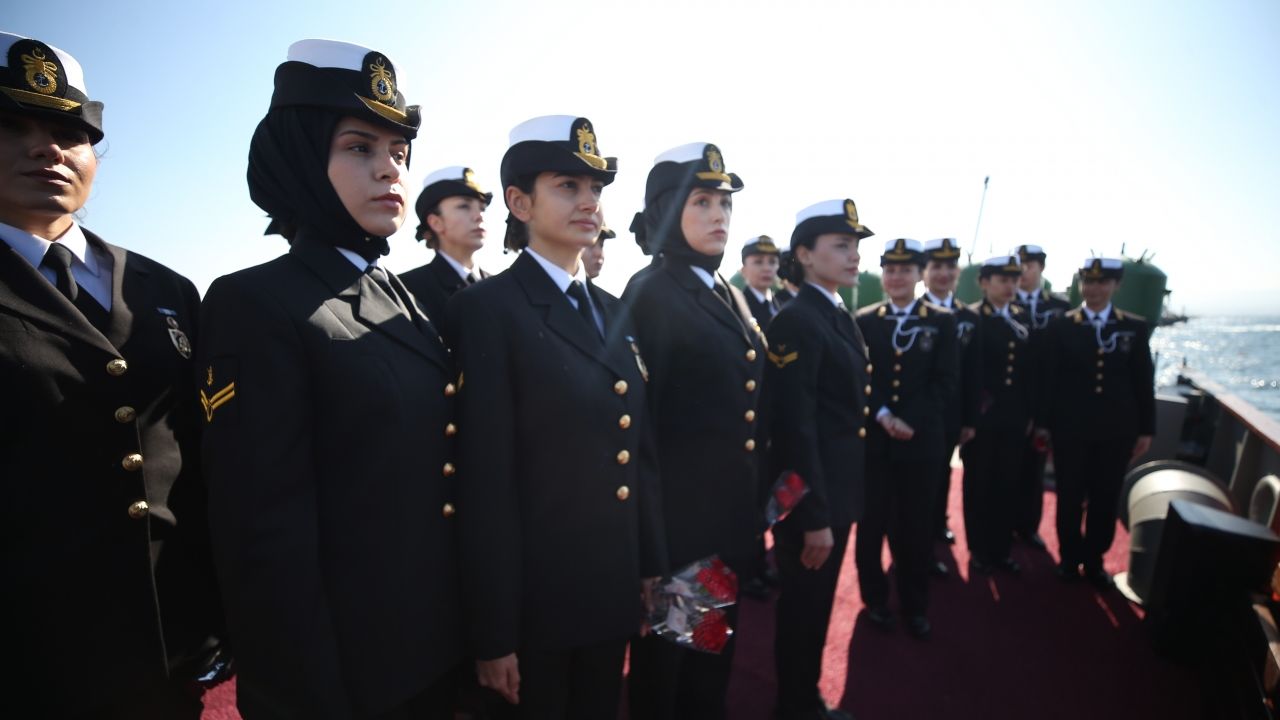 ÇANAKKALE (AA) - Kadın deniz astsubayları ile Milli Savunma Üniversitesi Deniz Harp Okulunun kadın öğrencileri, 8 Mart Dünya Kadınlar Günü dolayısıyla Çanakkale Boğazı'nda TCG Nusret Gemisi ile düzenlenen seyir faaliyetine katıldı.