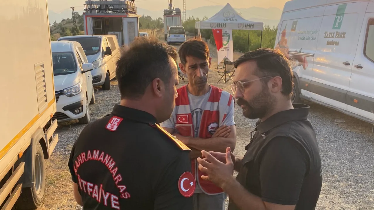 Kahramanmaraş’ın Onikişubat ilçesine bağlı Çamlıbel Mahallesi’nde meydana gelen orman yangınına müdahale sürerken, sivil toplum kuruluşları da sahadaki desteğini artırarak devam ettirdi. Bu kapsamda, Şahbaz Uluslararası İnsani Yardım ve Arama Kurtarma Derneği ekipleri, yangının başladığı ilk andan itibaren afet bölgesinde aktif görev yaptı.KAHRAMANMARAŞ (İGFA) - Yangının etkili olduğu bölgede görev yapan kamu personeli ve gönüllü ekiplerin koordinasyonunu sağlamak adına yoğun bir çaba sarf eden Şahbaz Derneği, sahada bulunan ekiplere soğuk su, ayran, kamp yatakları ve uyku tulumları dağıttı.