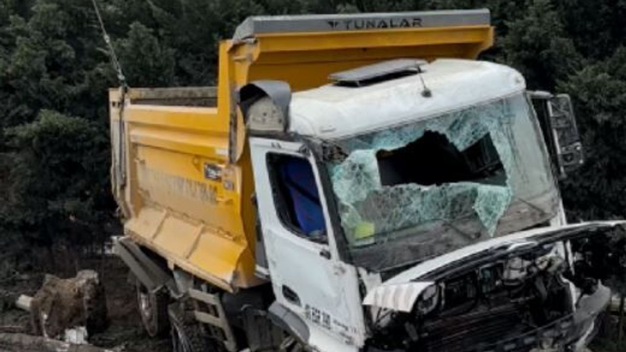 Kamyon bariyerlere çarpıp yan yattı; 1 yaralı