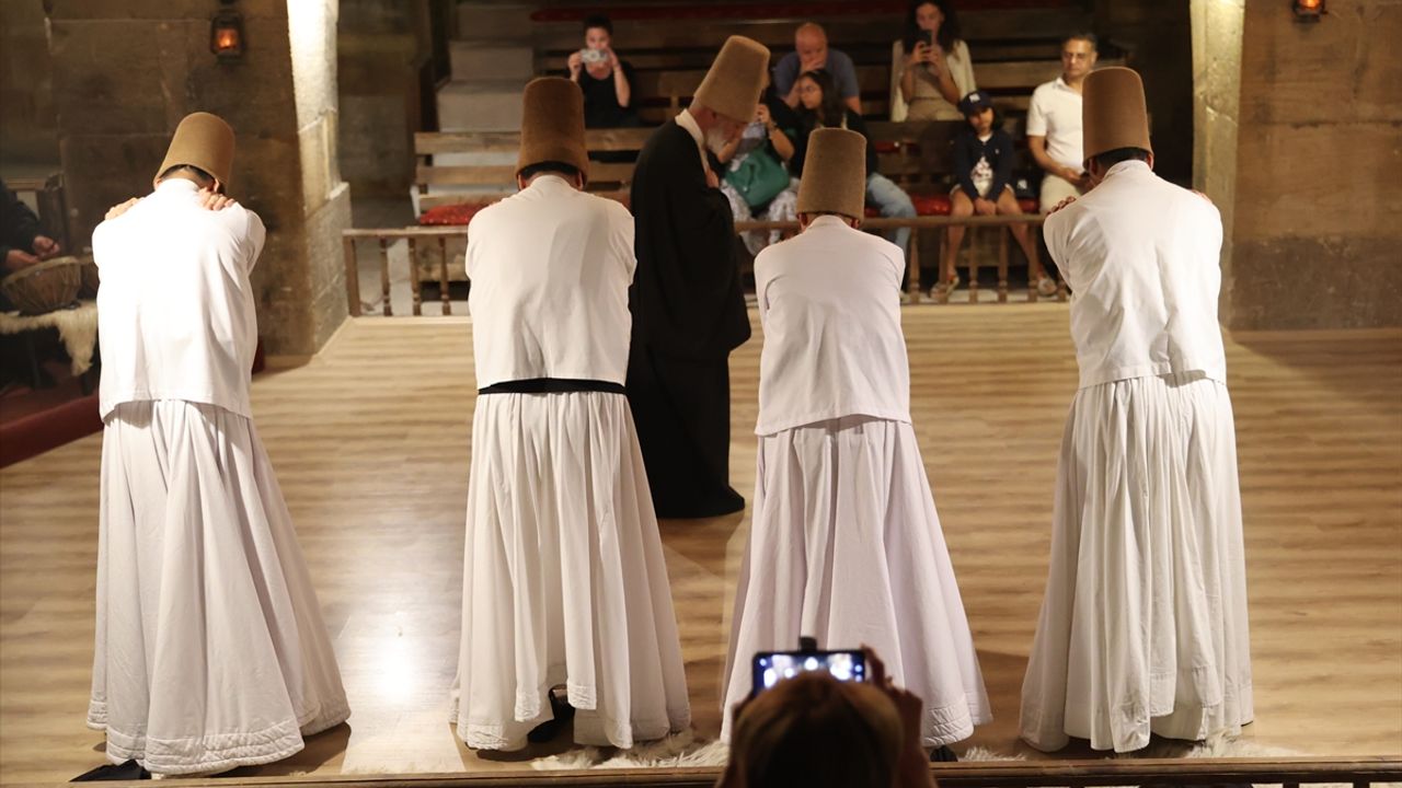 NEVŞEHİR (AA) - BEHÇET ALKAN - Kapadokya'ya gelen turistler, Avanos ilçesi yakınlarındaki 8 asırlık Saruhan Kervansarayı'nda sema ayiniyle tasavvufa yolculuk yapıyor.