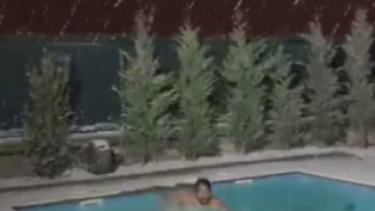 Koza Mahallesi'nde yaşayan Vural Göksu, kentte etkili olan kar yağışı ve soğuk havaya rağmen, evinin bahçesindeki havuza girdi. Kar altında yüzdüğü anları cep telefonu kamerasıyla kaydeden Göksu, görüntüleri de sanal medya hesabından, 'Soğuktan yörüngem şaştı' notuyla paylaştı. (DHA)