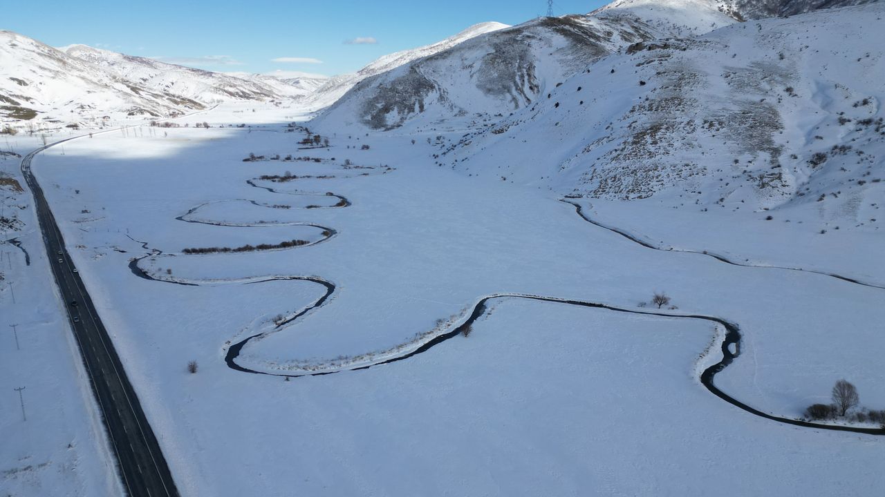 Özcan ÇİRİŞ/BİTLİS, (DHA)- BİTLİS'in Tatvan ile Hizan ilçeleri arasındaki Güzeldere bölgesinde kar yağışı sonrası menderesler güzel manzaralar oluşturdu. Menderesler, dron ile görüntülendi.