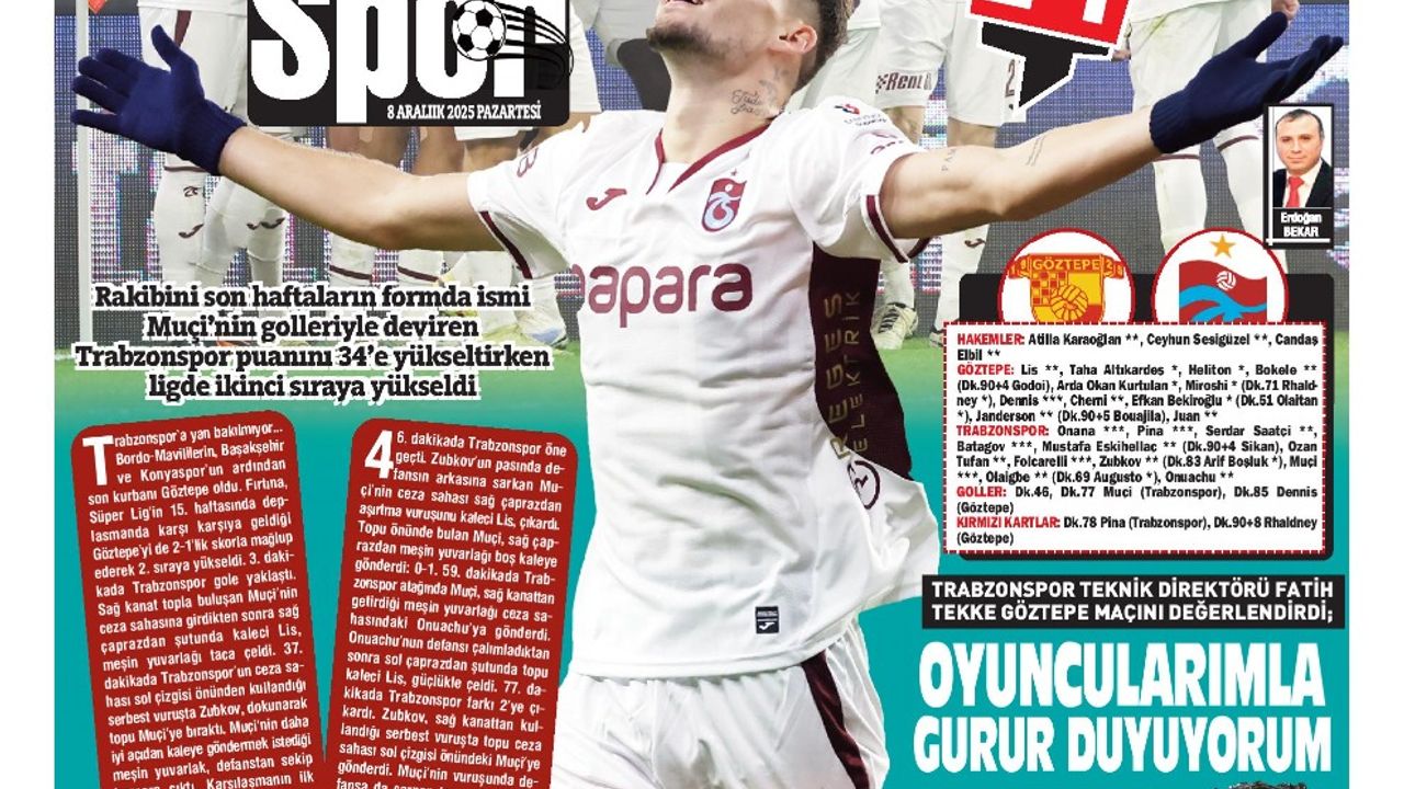 Trabzon'da yayın yapan yerel gazeteler de Göztepe karşısında deplasmanda alınan galibiyeti manşetlerine farklı başlıklarla taşıdı. Manşetlerde Muçi'nin performansı ön plana çıktı. Yerel basında öne çıkan başlıklar şu şekilde: