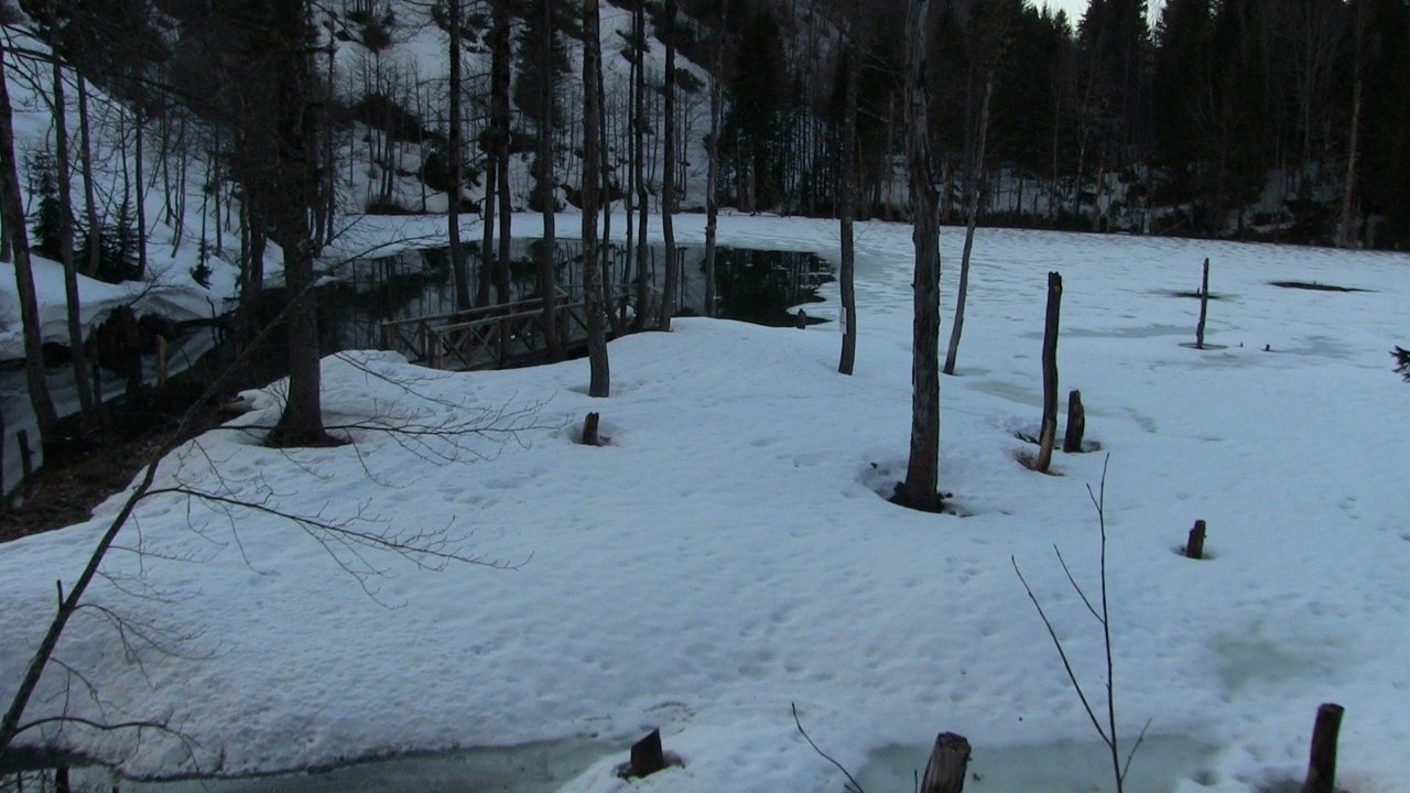 Ziya AKYILDIZ/BORÇKA (Artvin), (DHA)- ARTVİN'in Borçka ilçesinde etkili olan kar yağışının ardından Karagöl'ün yüzeyi dondu.