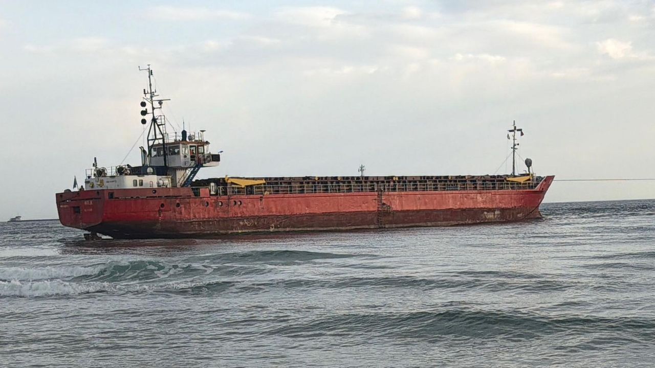 Tekirdağ'ın Marmaraereğlisi ilçesinde fırtına nedeniyle cumartesi günü saat 14.30 sıralarında karaya oturan Palau bayraklı kuru yük gemisi, Kıyı Emniyeti Genel Müdürlüğü'ne ait 2 römorkörle saat 16.30 sıralarında kurtarıldı. Açığa çekilen gemide dalgıçlar tarafından dalış yapılarak hasar tespit incelemesi yapılacağı belirtildi. (DHA)