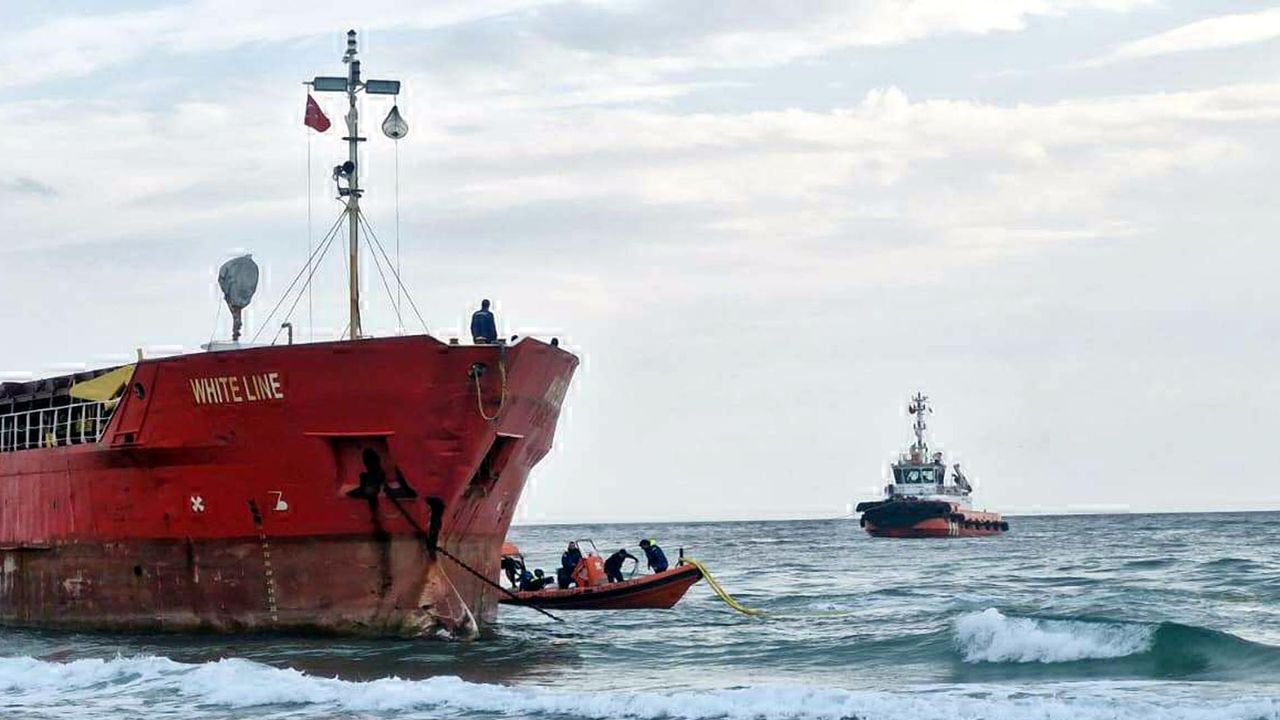 Marmaraereğlisi ilçesi açıklarında Palau bayraklı 'White Line' isimli kuru yük gemisi, cumartesi günü saat 14.30 sıralarında kuvvetli fırtına nedeniyle sürüklendi. Yük almak üzere Martaş Limanı'na yanaşmaya çalışan gemi, sürüklendiği Santos Plajı açıklarında karaya oturdu. 9 mürettebatı bulunan geminin karaya oturduğu bölgeye Sahil Güvenlik Komutanlığı, Kıyı Emniyeti Genel Müdürlüğü, Liman Başkanlığı ve deniz polisleri sevk edildi. Gemiyi müdahale edilmesi için hava şartlarının düzelmesinin beklenmesine karar verildi. Dalgıçlar, önceki gün gemide hasar tespitinde bulunmak için dalış yaptı. Yaklaşık 1 saat süren çalışmada dalgıçlar, geminin deniz tarafında yüksek dalga olduğu için tespit yapamadı. Daha sonra yapılan tespitte gemide hasar oluşmadığı belirlendi.