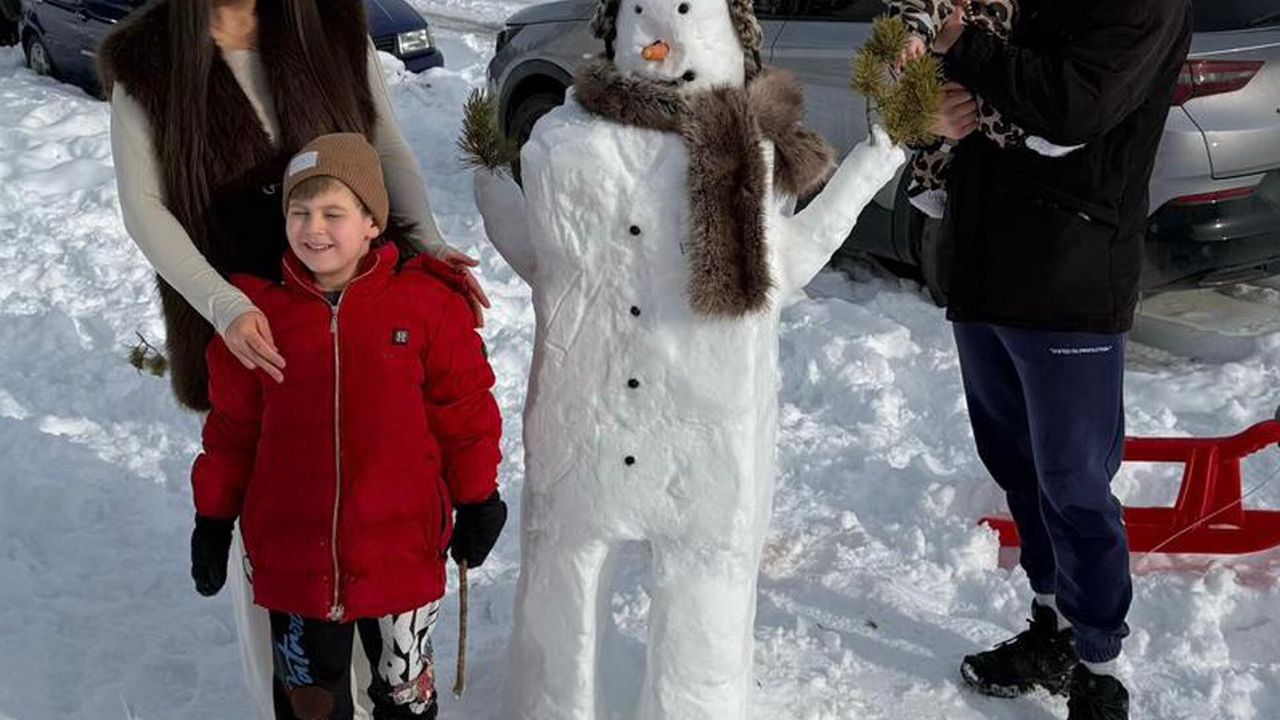 Kar kalınlığının 30 santimetreyi bulduğu Kars'ta bir aile, beyaz çileyi eğlenceye dönüştürdü. Evlerinin bahçesindeki karları toplayan 2 çocuklu aile, yaklaşık 1,5 metre boyunda kardan adam yaptı. Yaptıkları kardan adamın başına Kafkas kültüründe güç, asalet, özgürlük ve bağımsızlığın sembolü olan kalpak takan aile, boynuna da yün atkı sardı.