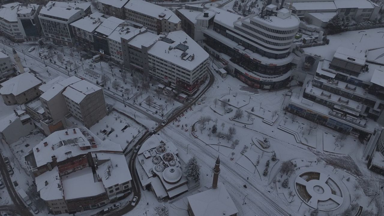 Kent merkezinde sabah erken saatlerden itibaren kar yağışı etkili oldu. Kar yağışıyla birlikte kar kalınlığı yaklaşık 10 santime ulaştı. Belediye ekipleri kentin ana arterleri üzerinde kar küreme çalışması yaptı. Beyaz örtüyle kaplanan kent merkezi dronla görüntülendi. (DHA)