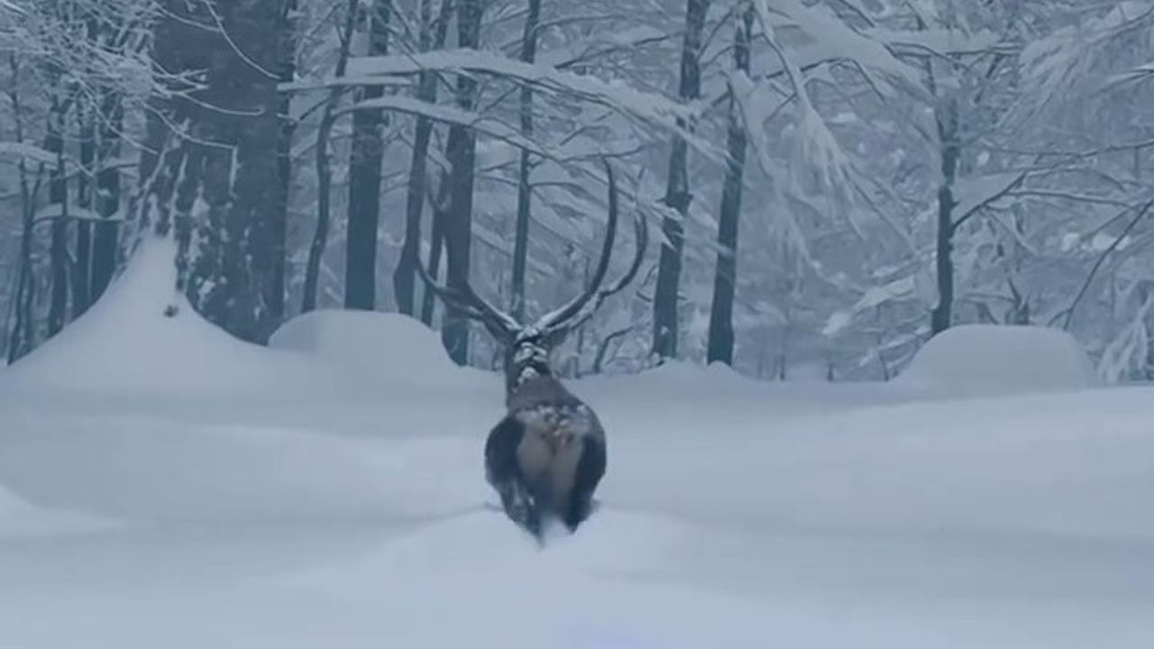 Samanlı Dağları'nın 1640 rakımlı zirvesi Kartepe'nin eteklerindeki Kuzuyayla Tabiat Parkı, etkili olan yağış ile birlikte karla kaplandı. Kar kalınlığı 50 santimetreyi geçerken, bir kızılgeyiğin karla kaplı alanda yürüdüğü anlar, cep telefonuyla görüntülendi. Kocaeli Büyükşehir Belediye Başkanı Tahir Büyükakın sanal medya hesabından o anları, 'Karlar içinde salınan bir güzellik' notuyla paylaştı.