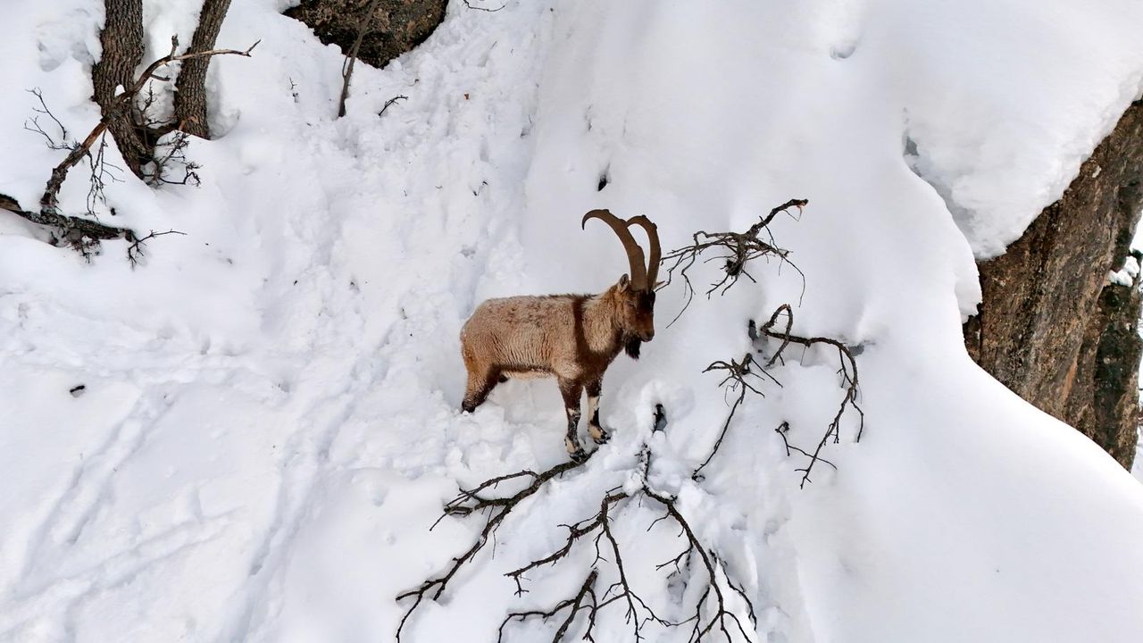 Kar kalınlığının yer yer 2 metreyi bulduğu alanlarda dikkatle yürüyen keçilerin, yiyecek bulabilmek için ağaçların dal ve tomurcuklarını yediği gözlendi. Keçilerin doğayla verdiği zorlu mücadele dron kamerasına da görüntülendi. Yetkililer, özellikle kış aylarında yaban hayvanlarının doğal yaşam alanlarının korunmasının büyük önem taşıdığına dikkat çekerek, koruma ve izleme çalışmalarının sürdüğünü bildirdi. Bu kapsamda Doğa Koruma ve Milli Parklar ekiplerinin, özellikle dağ keçisi popülasyonunun yoğun olduğu bölgelere yem bıraktığı kaydedildi. (DHA)