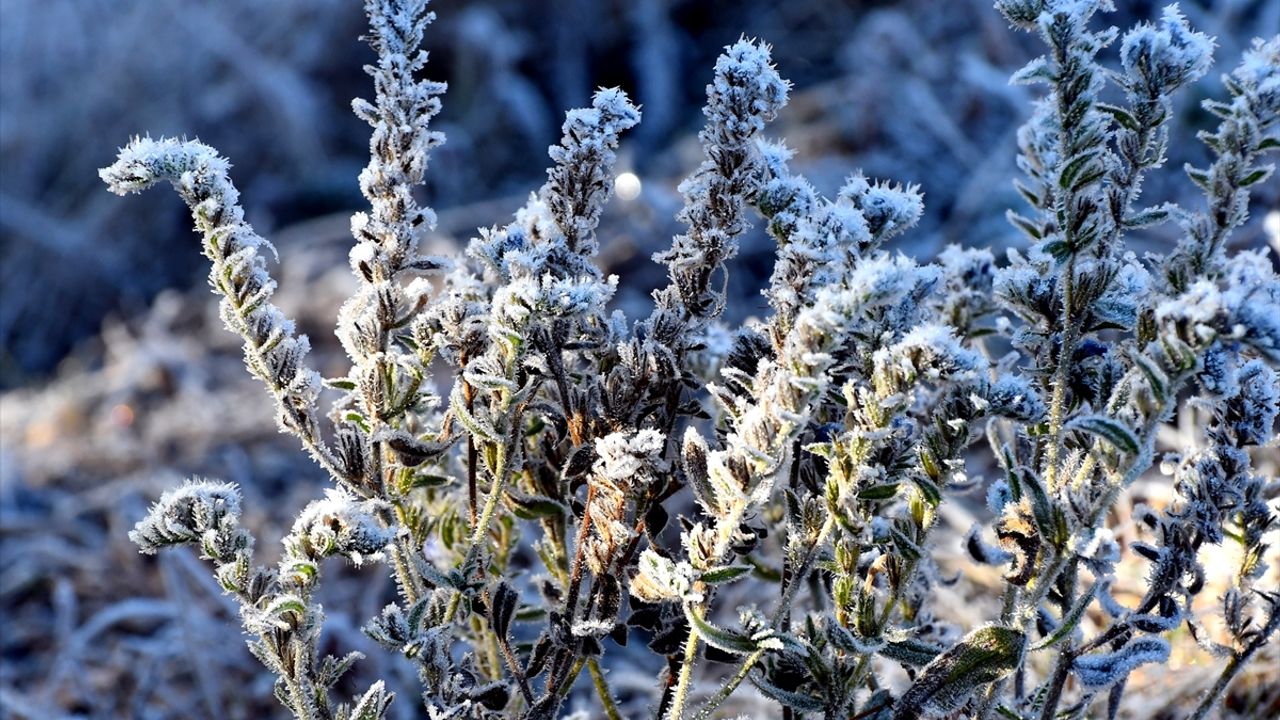 Hava sıcaklığının sıfırın altında 5 dereceye düştüğü kentte, bitkiler ve ağaçlar kırağı ile kaplandı.