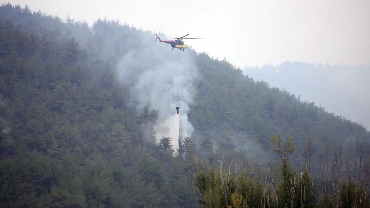 Alevler, 17 helikopter, bir tanker uçak, 21 su tankeri, 32 arazöz, 27 ilk müdahale aracı, 12 iş makinesi, 8 treyler ile kamyon, 47 araç ve 437 personelle söndürülmeye çalışılıyor.