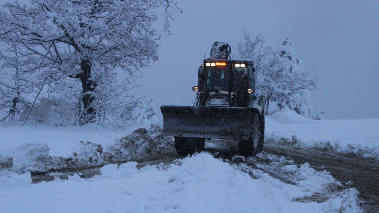Muhtarın ihbarıyla İl Özel İdaresine bağlı ekipler, yaklaşık 30 santimetreyi bulan kar nedeniyle kapanan yolu ulaşıma açtı.